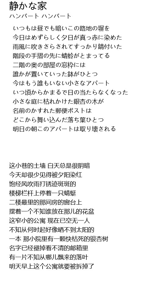 静かな家 Jing Jia Lyrics Follow Lyrics