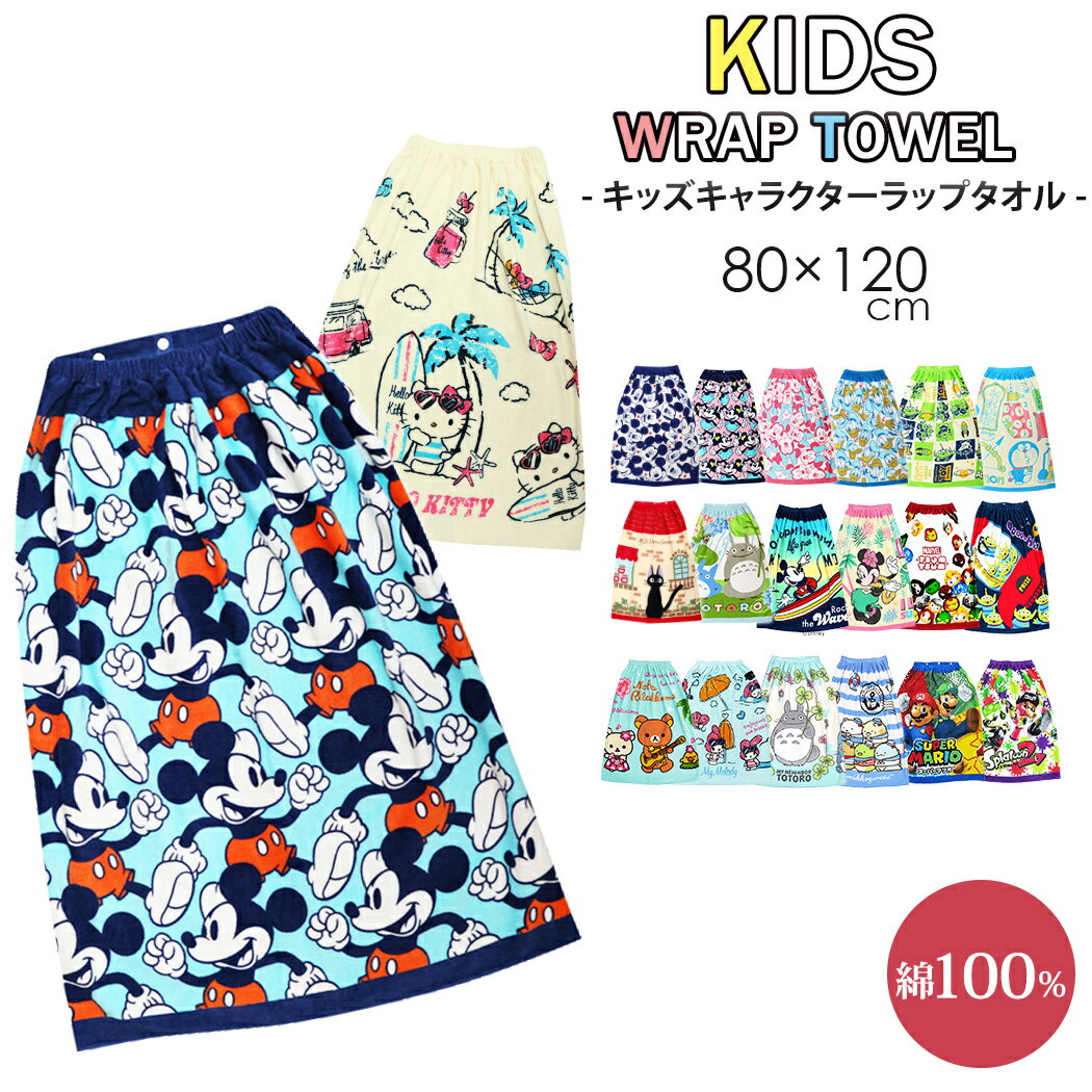 楽天市場 名入れ無料 送料無料 ラップタオル キッズ 80cm キャラクター 巻きタオル 男の子 女の子 ギフト プレゼント プール 海 タオル コットン100 ディズニー サンリオ ミニオン ドラえもん マリオ 任天堂 10種類 約80 1cm Regaloレガーロセレクト