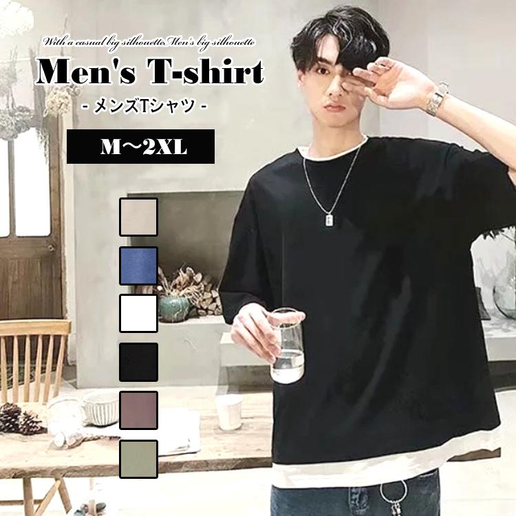 半袖tシャツ メンズ Tシャツ 無地 半袖 フェイクレイヤード 夏 トップス カジュアル 新作